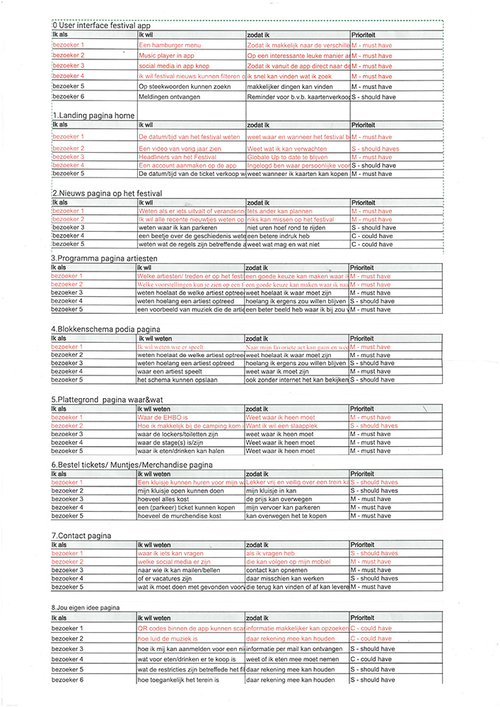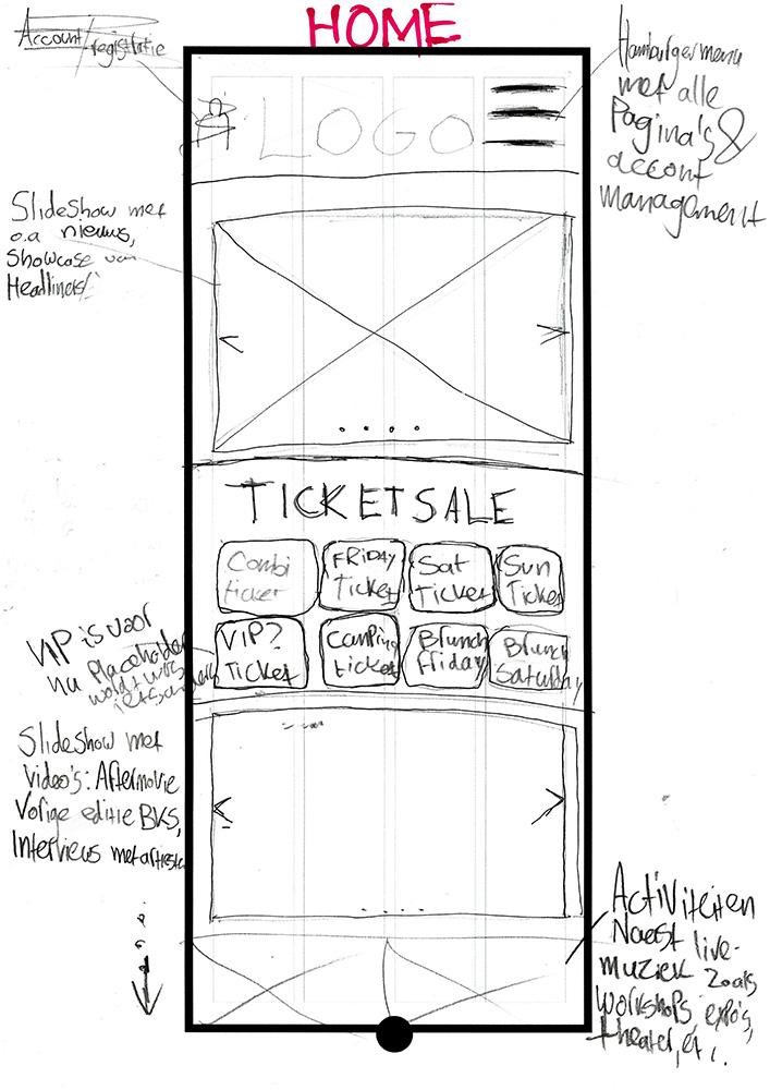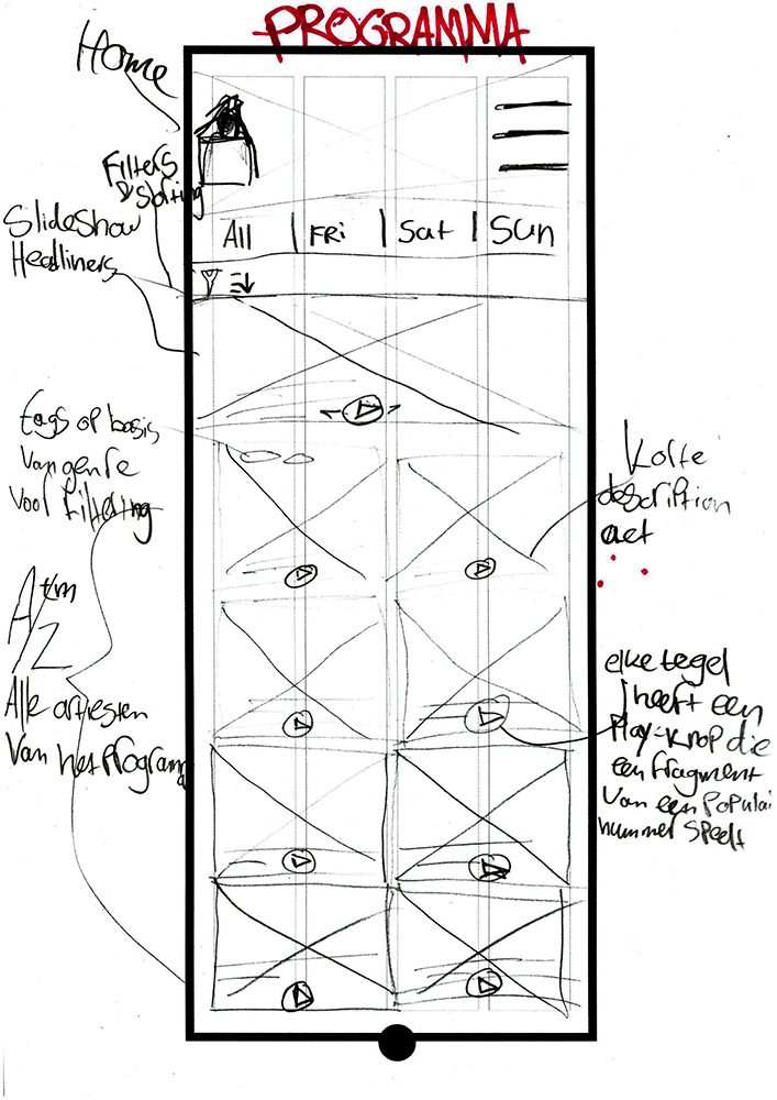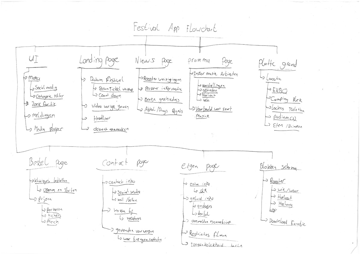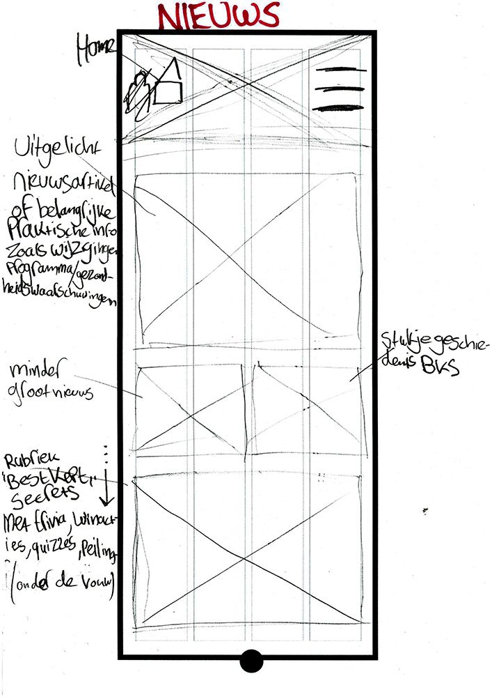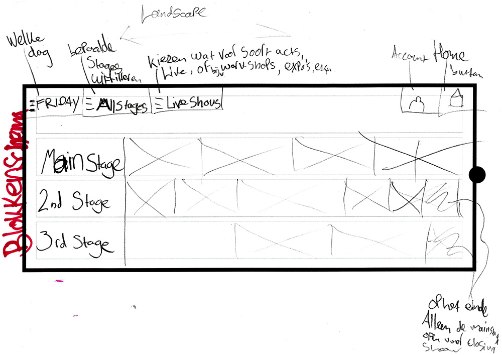 Voordat ik het prototype in XD ging maken, heb ik een aantal low-fidelity wireframes geschetst op papier, op basis van user stories die ik van tevoren had bedacht.